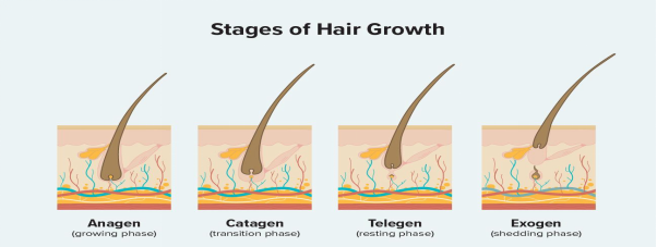 - يحدث خلالها تساقط الشعر الطبيعي بمعدل 50–100 شعرة يوميًا.