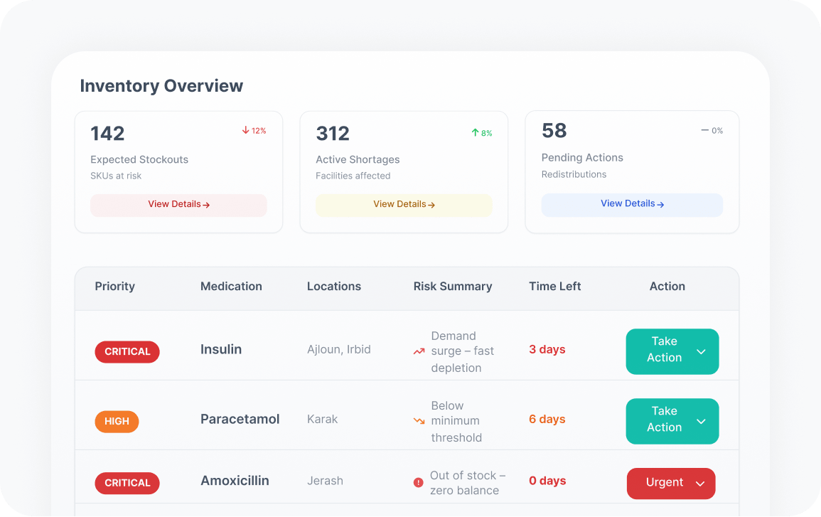 Aumet enabled real-time medicine redistribution between hospitals, eliminating waste and bureaucracy, and saving 2.3 million JOD in just three months with zero shortages.